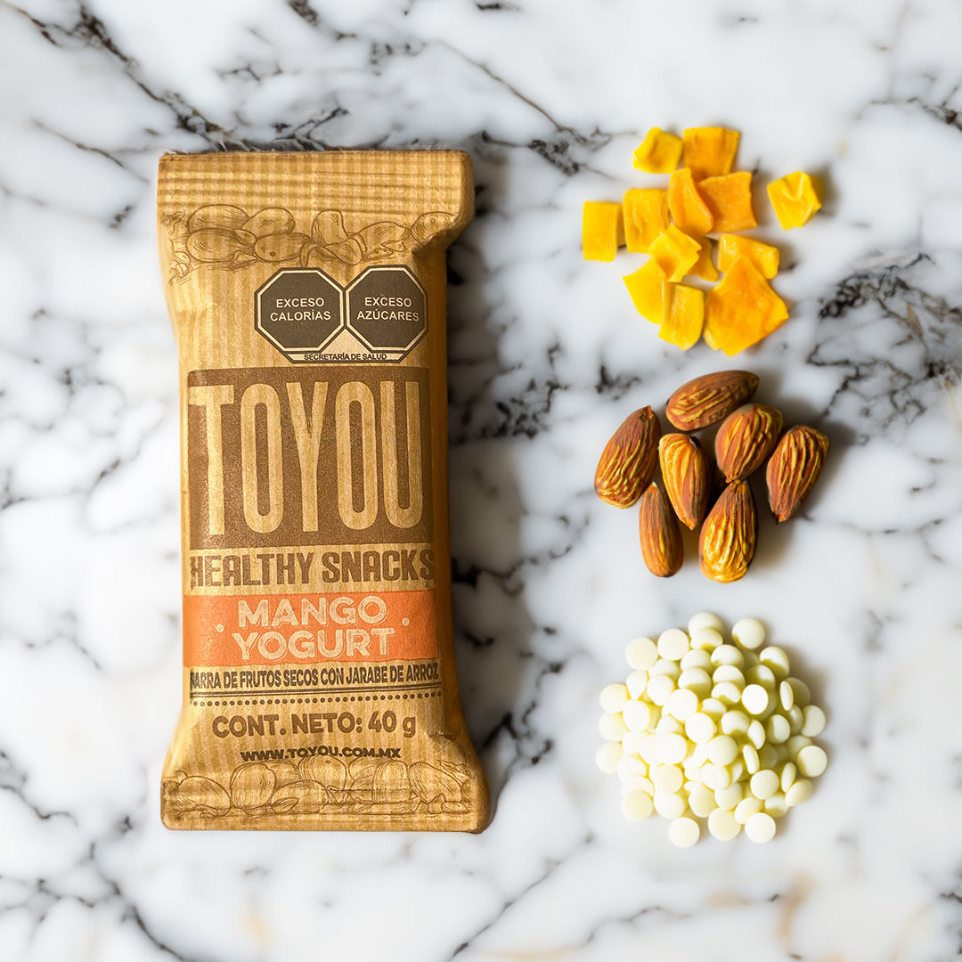 Disfruta de una deliciosa combinación de mango y yogurt con nuestra barrita energética. Un alimento rico en minerales (calcio, potasio y magnesio), y con dos fuentes de proteína, es el snack perfecto para darte energía inmediata mientras cuidas tu digestión. ¡Súper completa y llena de sabor!